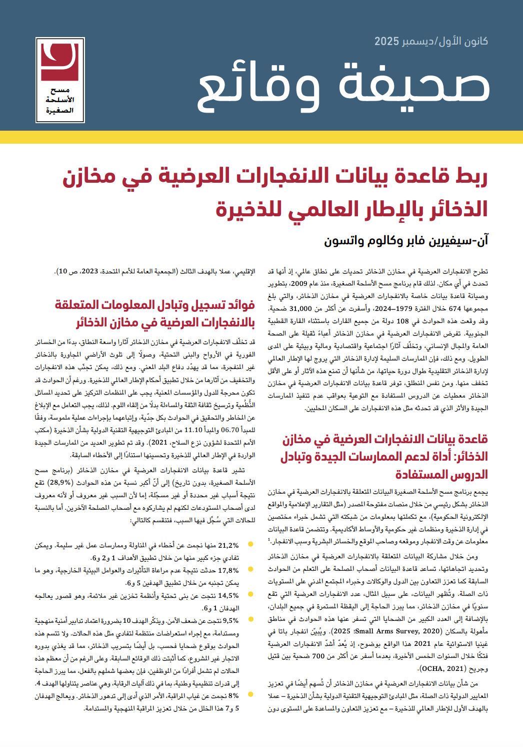 Quick facts on unplanned explosions at munitions sites (UEMS) - January 2025 updateby the Small Arms Survey | Infographic | February 2025 | ![]() ![]() |