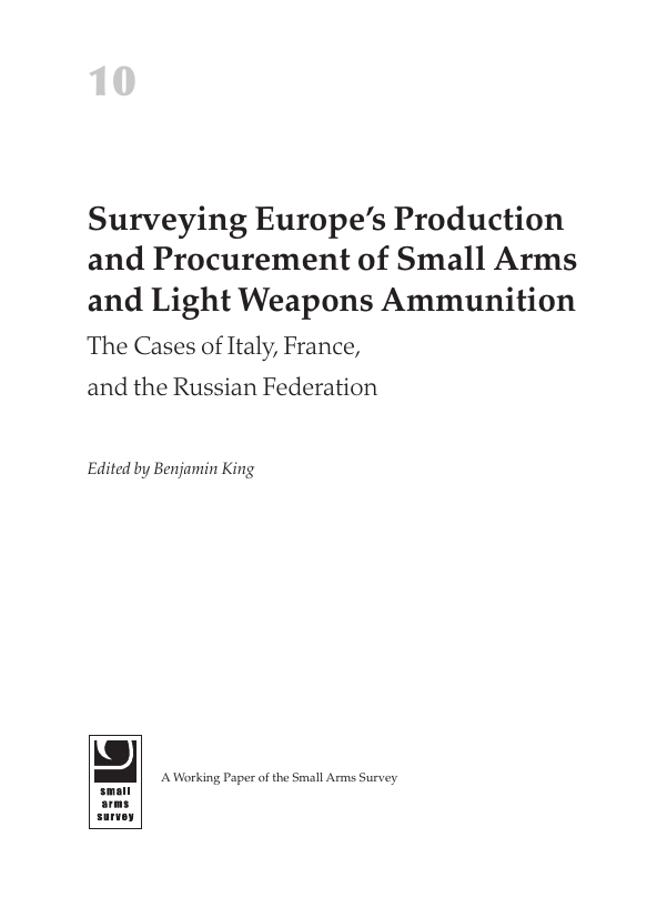 Surveying Europe’s Production and Procurement of Small Arms and Light Weapons Ammunition: The Cases of Italy, France, and the Russian Federation (Working Paper 10)By Benjamin King Working Paper | July 2010 English |